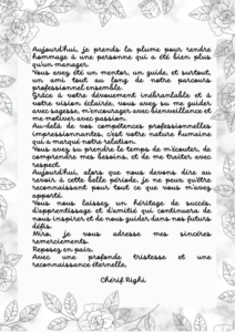 Je t’ai adressé un texte le jour de ta cérémonie qui était dur à prononcer.